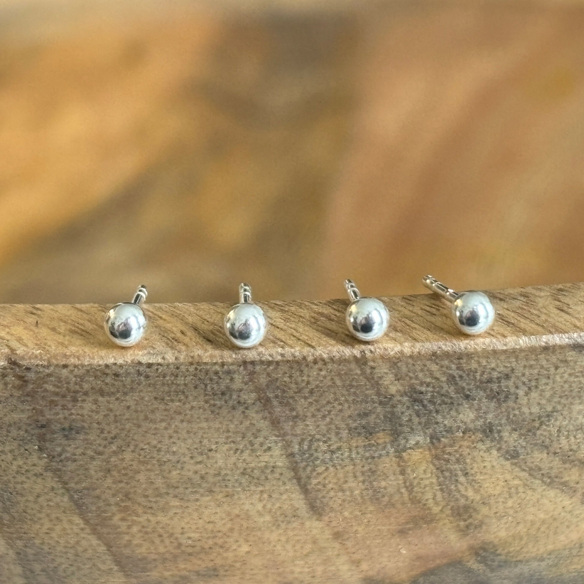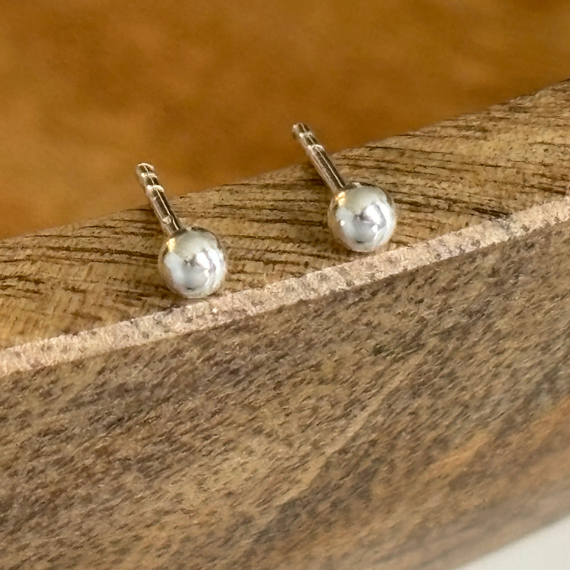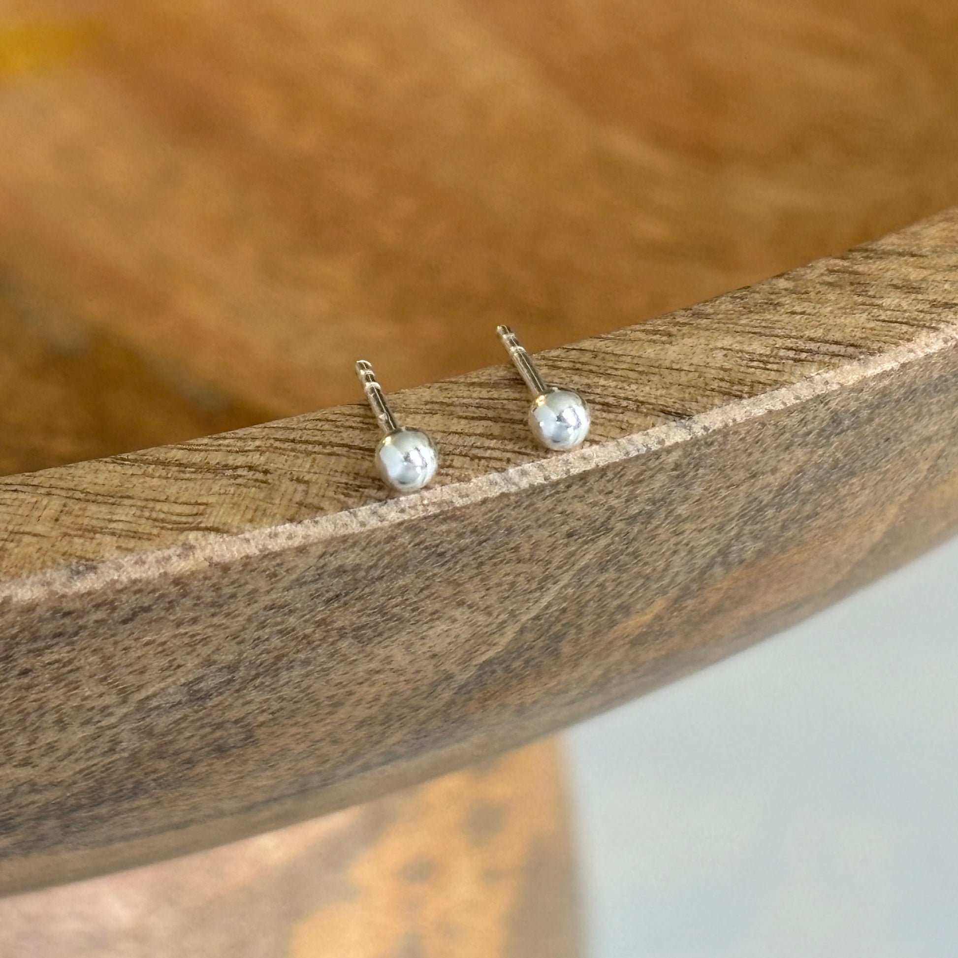 Small but perfectly formed classic ball stud earrings, ideal for a second piercing or as a minimal look. The ball is 3mm in diameter, made from sterling silver and hallmarked.
