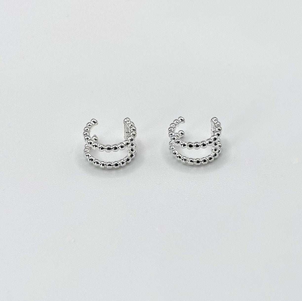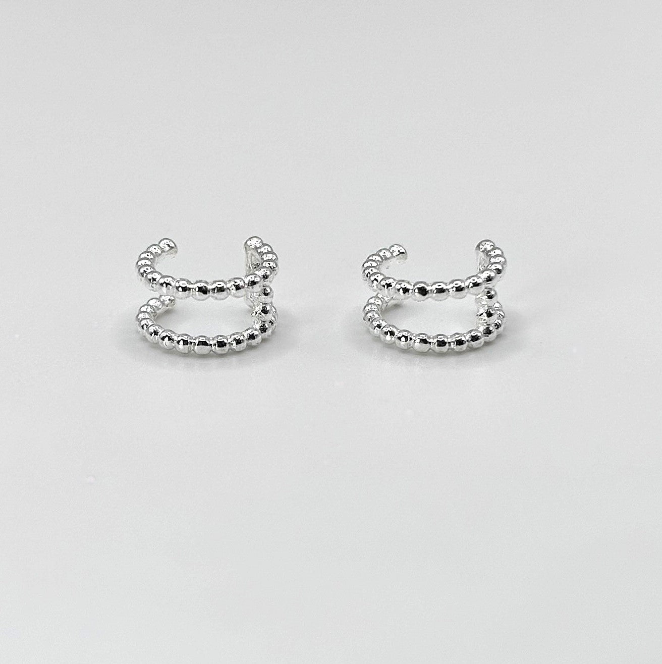 A pair of ear cuffs with a beautiful small bead pattern. When they are being worn, it looks like you are wearing two identical ear cuffs because of the double row, a stunning optical illusion without any piercings. The ear cuff is a fantastic design, it is subtle and just catches the light at certain angles.