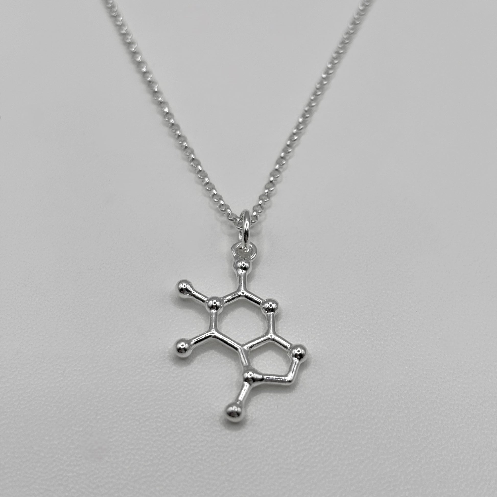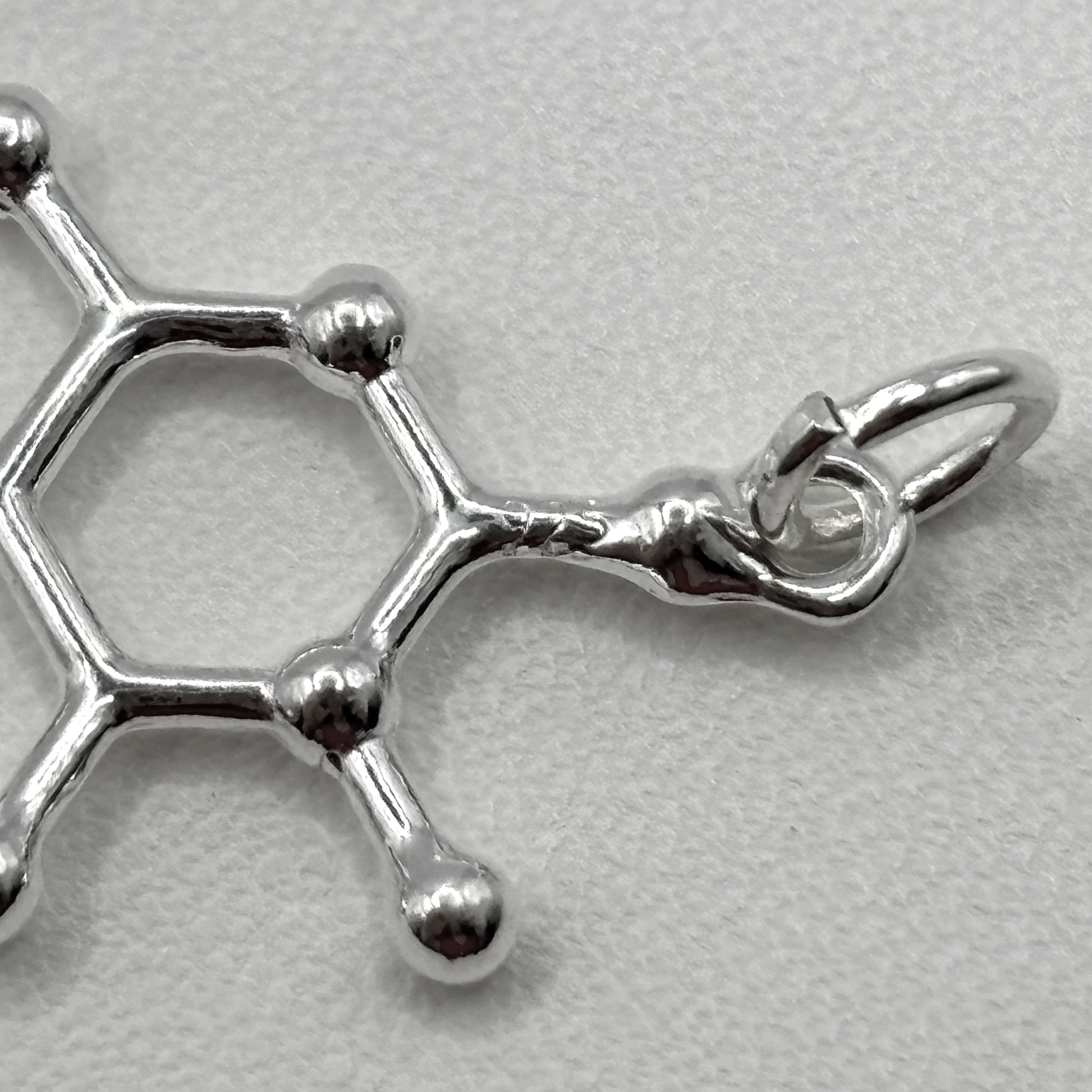 This is the chemical formula for chocolate in a sterling silver pendant, an interesting talking piece and beautiful to look at, complimented by a gorgeous sterling silver chain necklace.