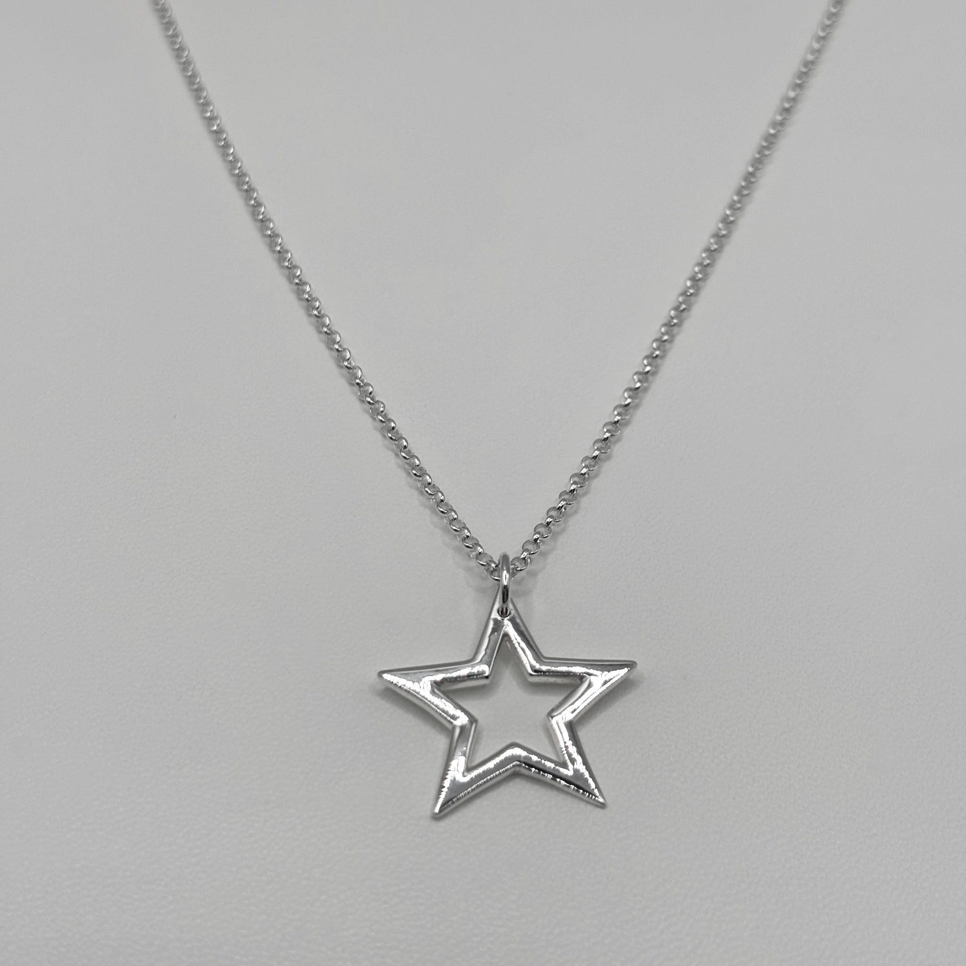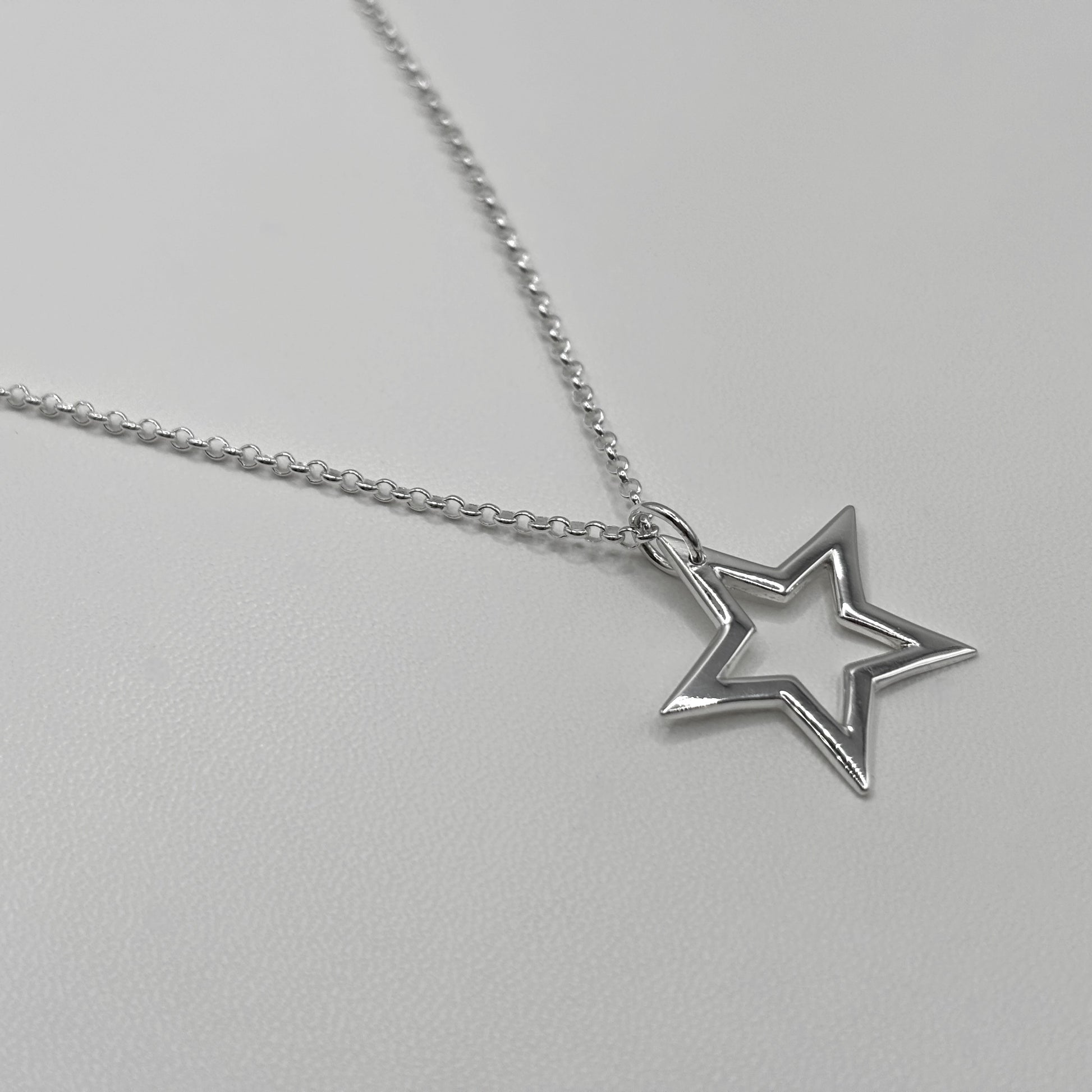The beautiful sterling silver star has a high shine that shimmers at every angle, it sits so nicely on the classic chain due to the attachment of a large pendant loop.