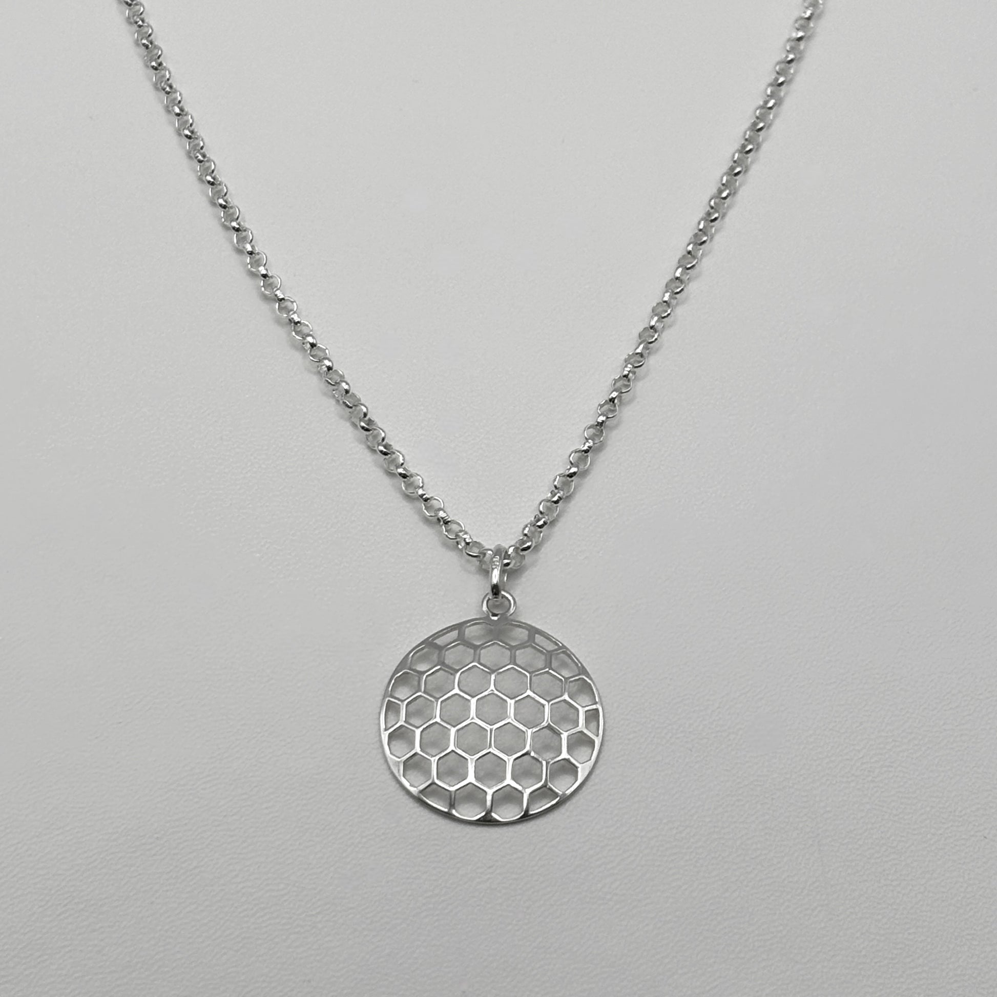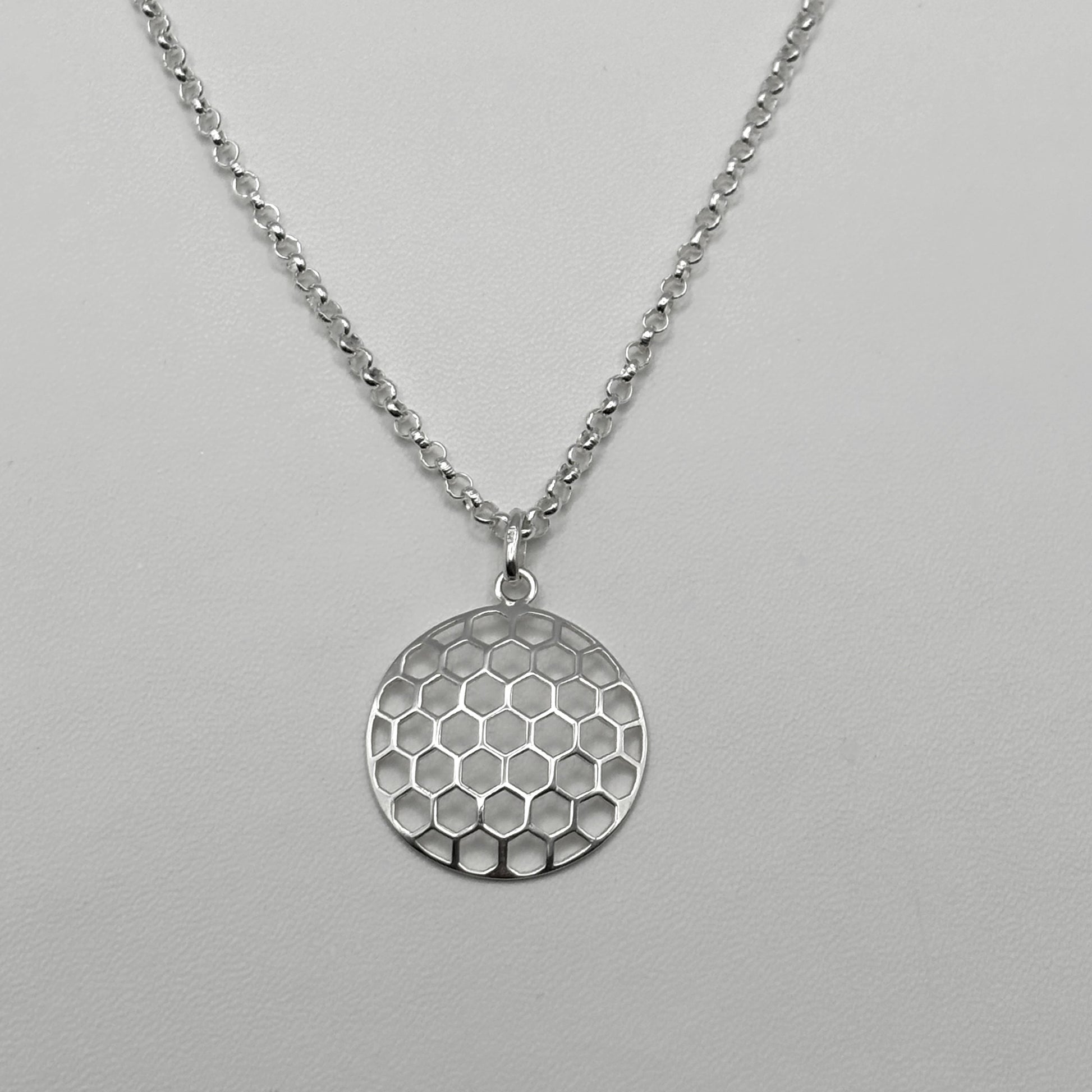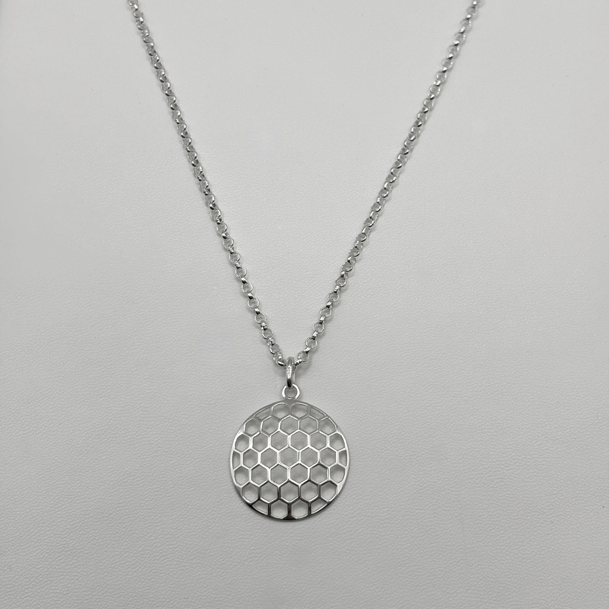 The honeycomb pendant has become such a popular and an awe-inspiring shape that represents nature, strength and of course our friends the honey bees. Paired with our classic necklace chain this is a real attention grabbing and striking piece of jewellery.