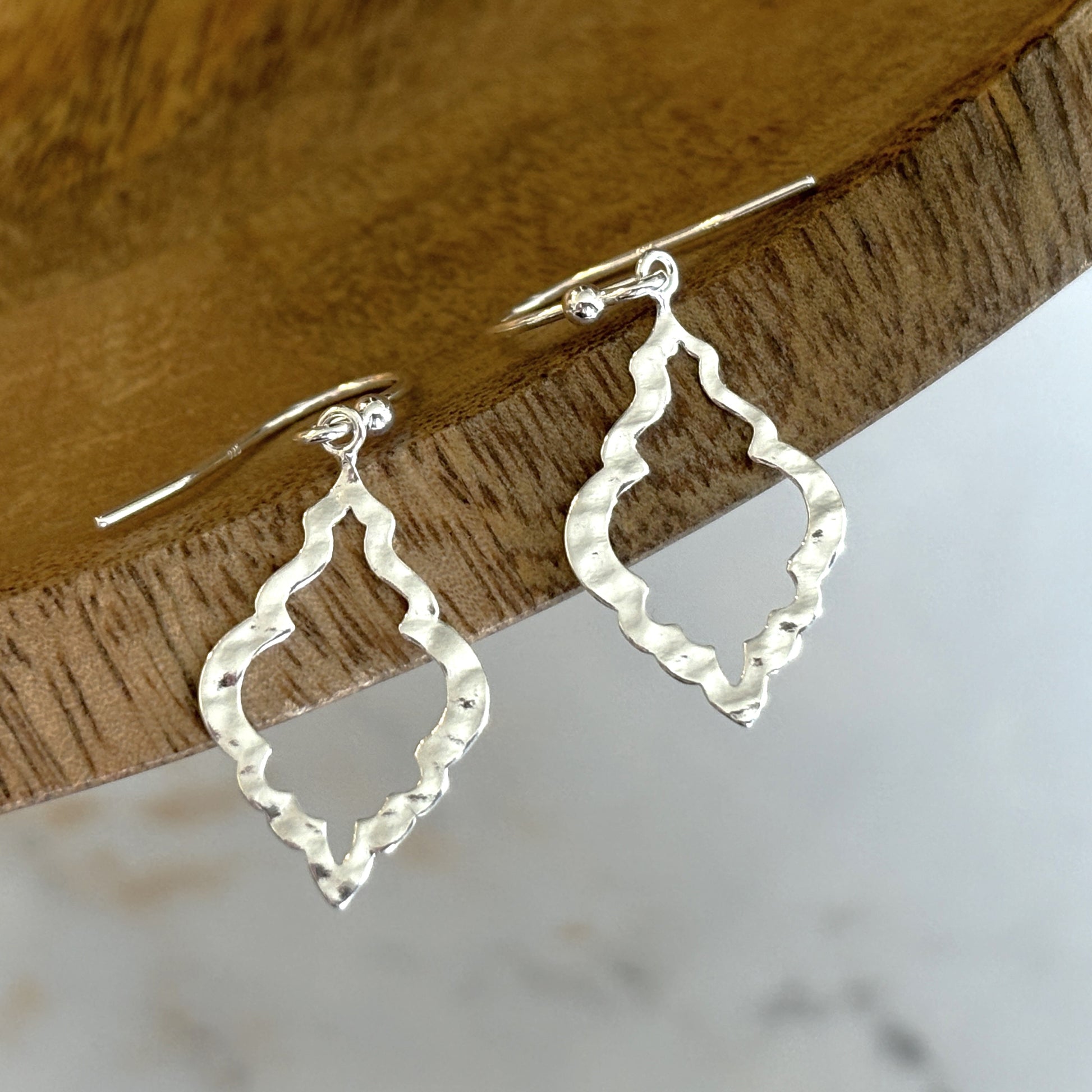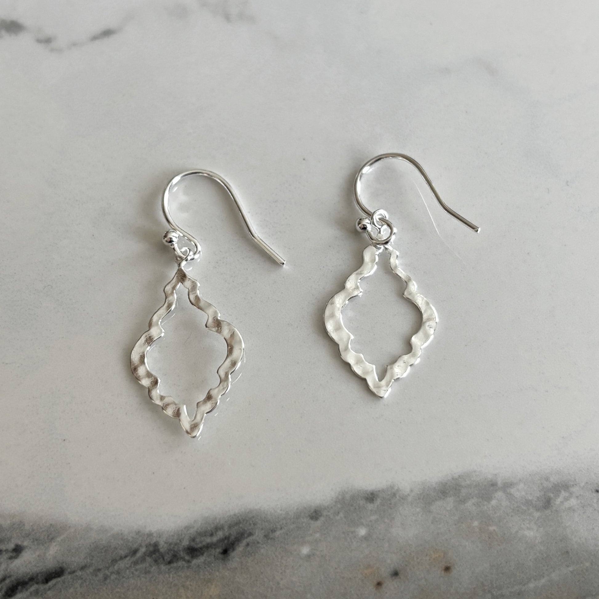 Add a touch of elegance to your outfit with these ornate diamond cut drop earrings.