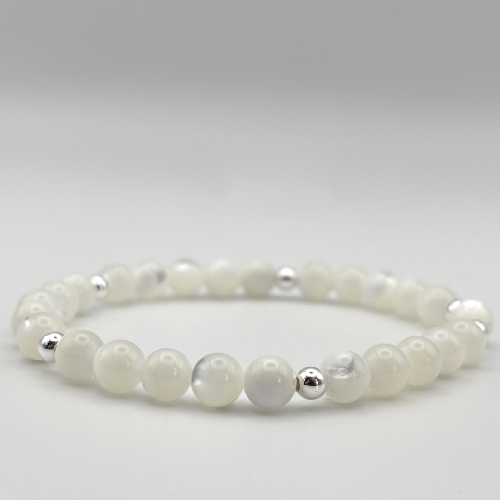 Mother of Pearl and Sterling Silver Bead Stretch Bracelet